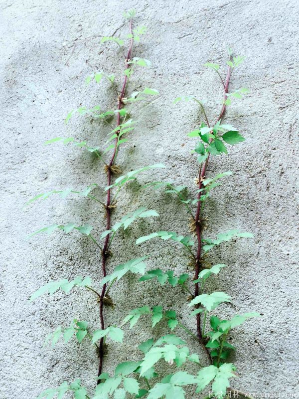 爬山虎屬于多年生大型落葉木質(zhì)藤本植物,其形態(tài)與野葡萄藤相似,其藤莖長達20米長,雌雄同株,葉子對生,長4~8cm,樹皮有皮孔,枝條粗壯,老枝灰褐色,嫩枝紫紅色,枝上生許多觸須,遇到可攀附的物體變牢牢的吸附在上面。它的適應性極強,性喜陰涼潮濕的環(huán)境,不懼強光直曬,耐寒、耐旱、耐貧瘠土壤,在各種氣候地區(qū)適應性好,我國南北地區(qū)均有爬山虎的存在。它的再生能力強,耐修剪,怕積水,栽植的地方在大雨時及時排水,對土壤的要求不嚴,肥沃或貧瘠的土壤都能正常生長,在陰濕的環(huán)境在陽光充足的環(huán)境都能茁壯成長。