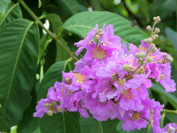 大葉紫薇是常用的公園、小區(qū)的行道樹種,其花期特別長,5-7月可持續(xù)觀賞。