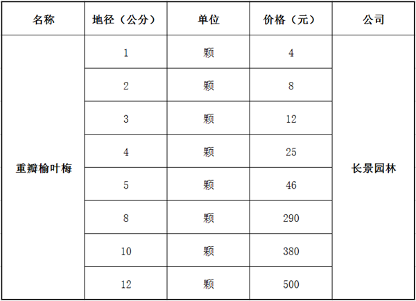 答案:雜交出的榆葉梅,不僅有單瓣也有重瓣的哦!就花朵數(shù)量來(lái)講,重瓣榆葉梅的花瓣比單瓣榆葉梅的要多的多;就觀賞來(lái)講,重瓣榆葉梅的花朵更有層次;就價(jià)格來(lái)講,重瓣榆葉梅的價(jià)格要比單瓣榆葉梅貴一點(diǎn),其實(shí)也貴不了多少,也就相差幾塊錢的位子。江蘇沭陽(yáng)長(zhǎng)景園林苗圃場(chǎng)里的重瓣榆葉梅的規(guī)格較多,常出售的規(guī)格一般在2公分--10公分這樣,以下是小編總結(jié)的一份價(jià)格表,具體價(jià)格請(qǐng)撥打電話聯(lián)系。