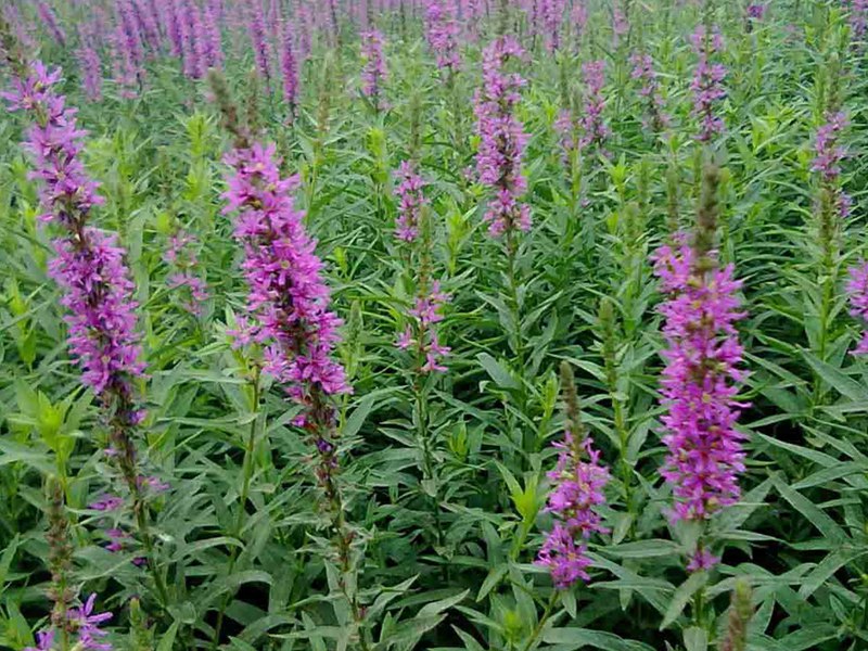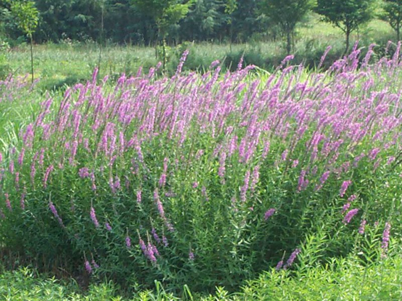 千屈菜又叫水枝柳、水柳、對(duì)葉蓮等,多年水生宿根草本植物,植株高約1米,直立生長(zhǎng),主桿上有許多分枝,葉子對(duì)生,披針形。葉子長(zhǎng)4~6cm,寬1cm左右。總狀花絮長(zhǎng)在最上面,長(zhǎng)約30cm,花朵簇生。喜歡溫暖濕潤(rùn)陽光充足的環(huán)境,在我國(guó)南方和北方地區(qū)都有野生的,生長(zhǎng)在沼澤、湖畔、池塘等淺水地區(qū)。它耐寒性強(qiáng),在山東、河南、北京等地均可自然越冬,霜降以后地面部分枯死,地下部分進(jìn)入泥土休眠,在淺水的河邊和低洼潮濕的地方生長(zhǎng)態(tài)勢(shì)最好,對(duì)土壤的要求不嚴(yán)。